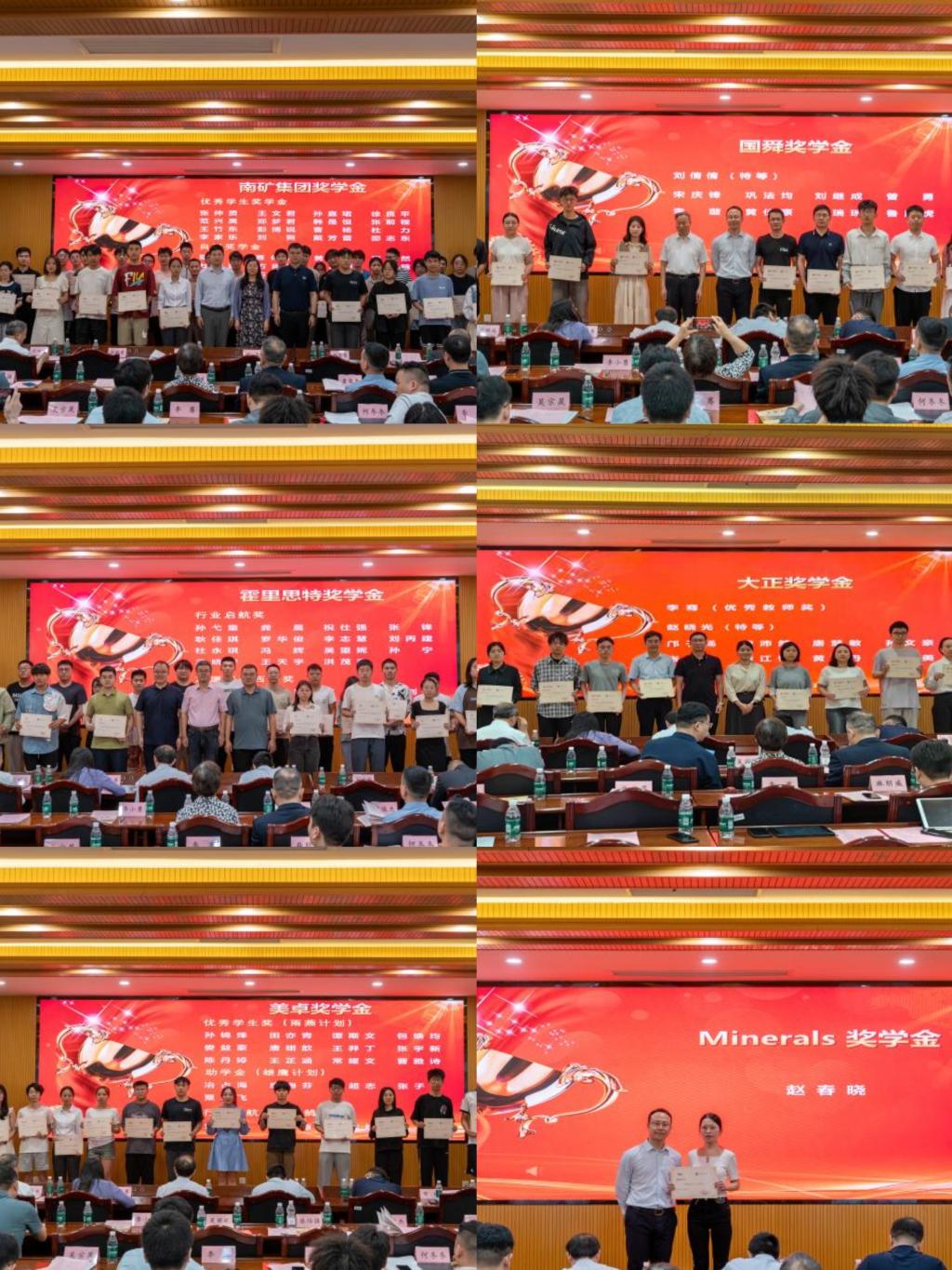 范晓慧现场宣布了各项奖励金获奖师生名单。邵志东等35名同学获得南矿集团奖学金,宋庆峰等9名同学获得国舜奖学金,吴望妮等20名同学获得霍里思特奖学金,李骞老师获得大正优秀教师奖,邝子扬等9名同学获得大正优秀员工奖,唐翊歆等20名同学获得美卓奖学金,赵春晓同学获得Minerals奖学金。