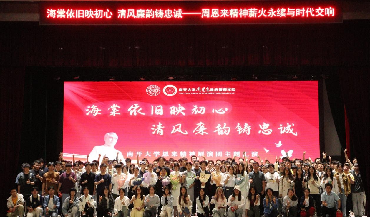 511日上午,公司为进一步开展深入贯彻中央八项规定精神学习教育,夯实师生党员清正廉洁思想根基,推动学习教育入脑入心,组织公司师生党支部书记和纪检委员、第20期发展对象培训班学员、第51期入党积极分子培训班学员共150余人参加“海棠依旧映初心,清风廉韵铸忠诚”南开大学恩来精神展演团主题汇演活动。